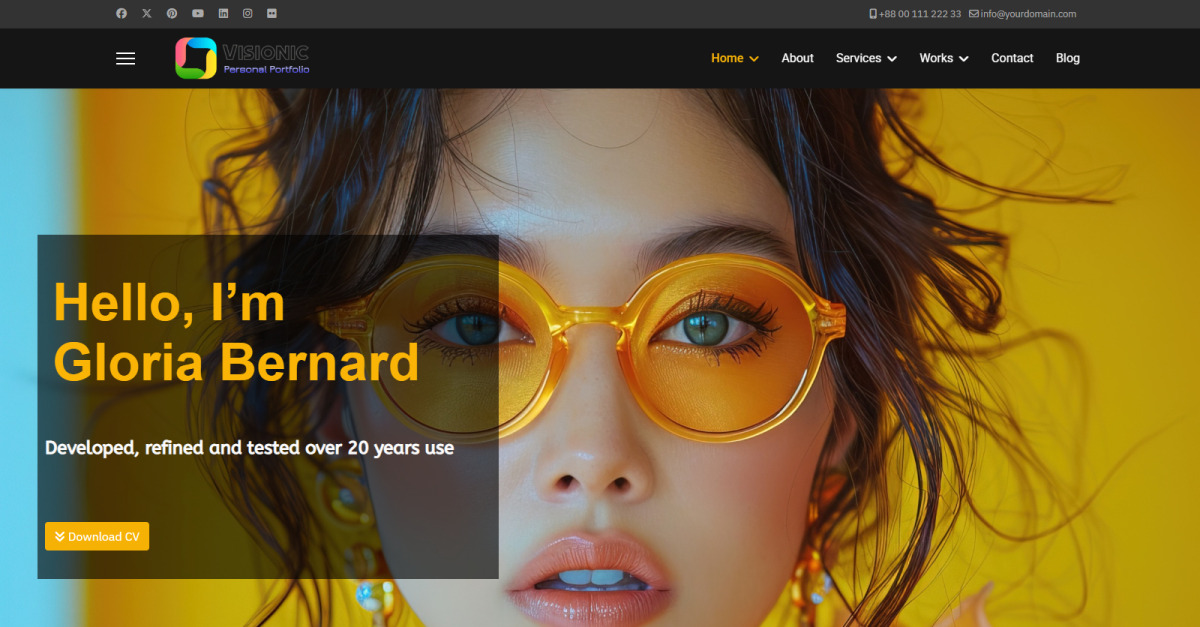 JL Visionic Personlig Portfolio CV vCard, CV Joomla6-tema