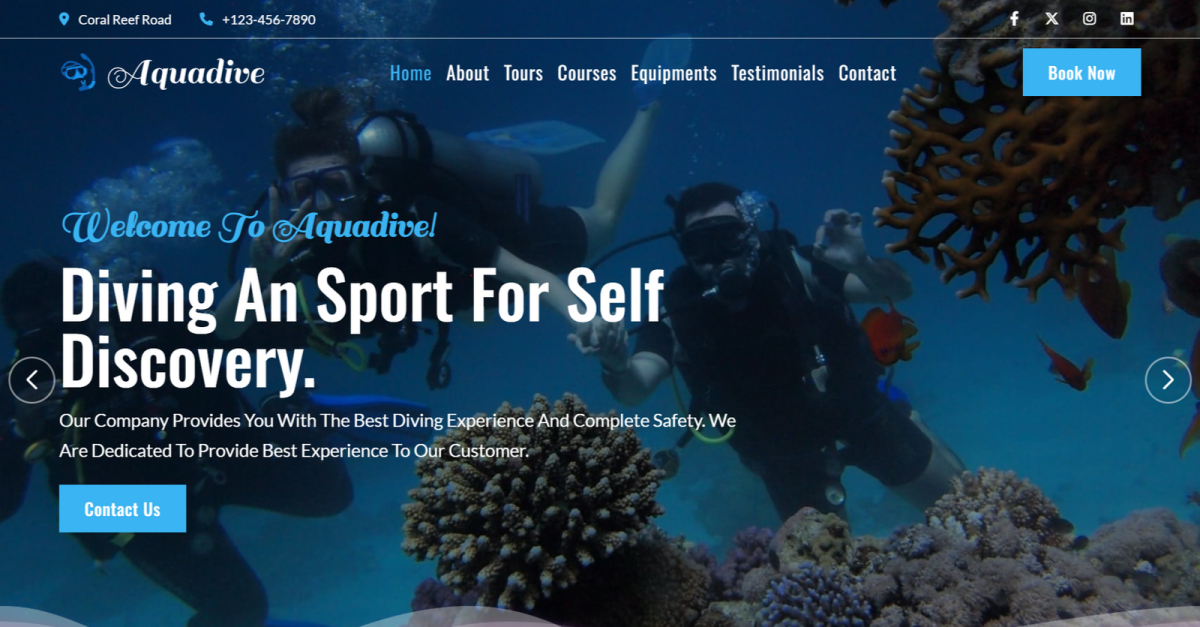 Aquadive comes with clean, well-organized code that’s easy to edit. Build your diving school, tour center, or underwater adventure portal with no advanced coding — just customize, brand it, and dive right in.