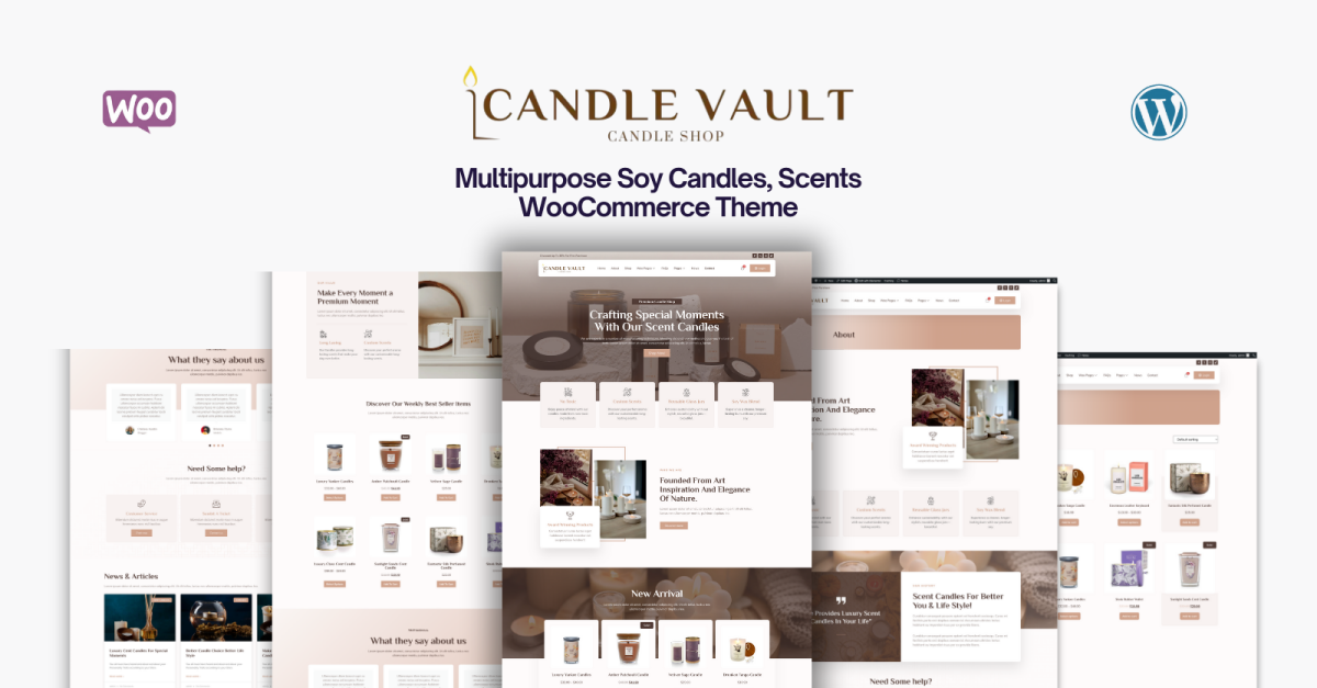 Candle Vault is a beautifully designed WordPress WooCommerce theme crafted for soy candle shops, handmade gift stores, and wellness-inspired brands. Built with the Elementor page builder, it allows you to design and customize your website with simple drag-and-drop controls—no coding required.