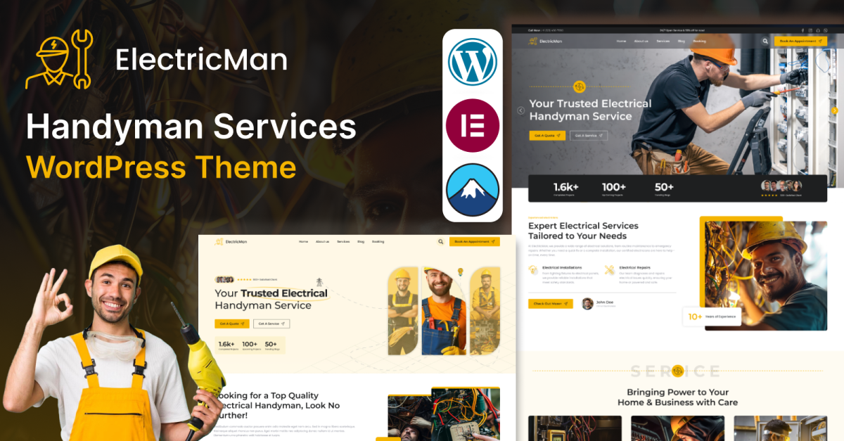 ElectricMan is a professional WordPress theme designed for electricians, plumbers, carpenters, home repair experts, and all types of handyman service providers. With its clean layout, service-focused structure, and Elementor Page Builder support, ElectricMan makes it simple to create a website that reflects your skills, builds trust, and drives customer inquiries.