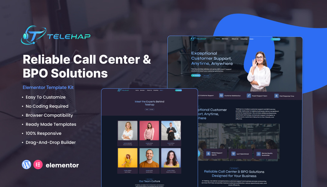 Telehap – Callcenter- und Kundensupport-Elementor-Vorlagenpaket
