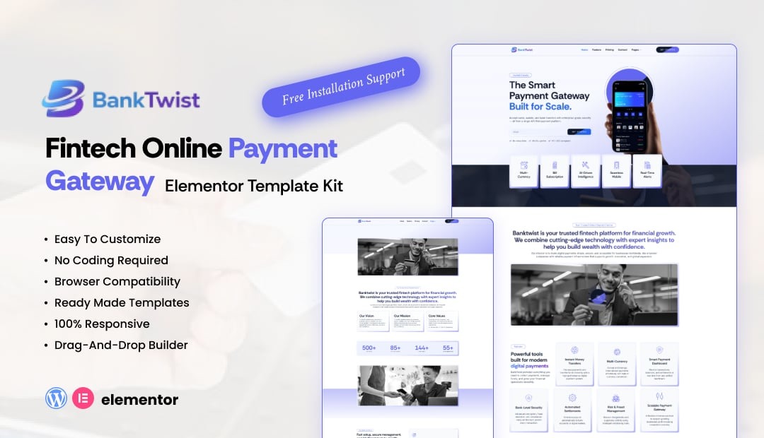 BankTwist – Modernes Fintech- und Digital-Banking-Elementor-Template-Kit
