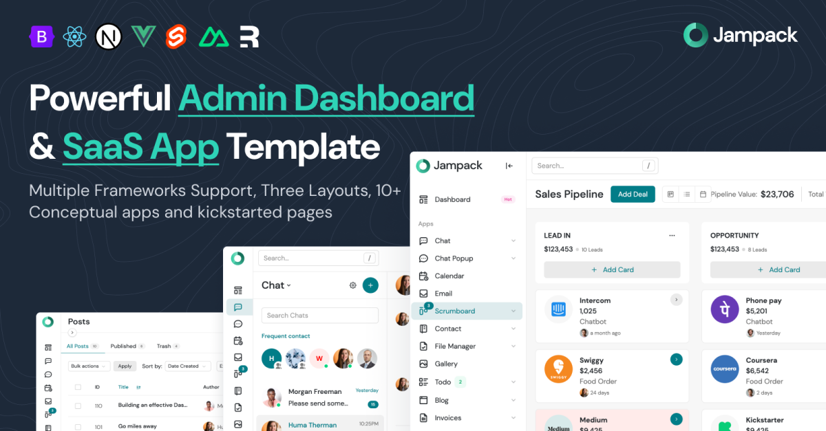 Jampack – All-in-One Admin Dashboard & SaaS Template (React, Next.js, Remix, Vue, Nuxt, Svelte)
