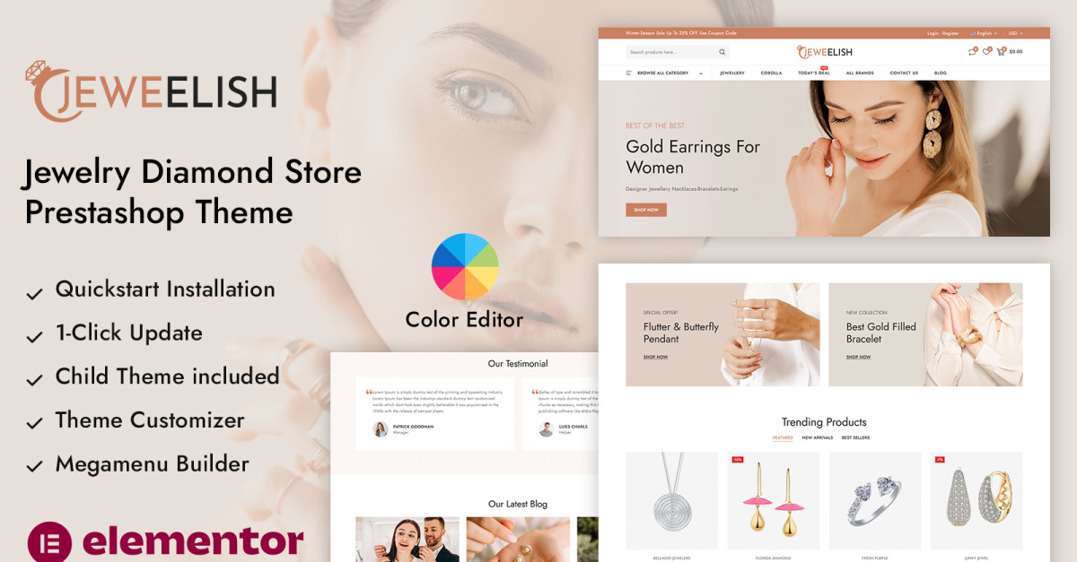 Whether you are launching a fine jewelry boutique or expanding an accessories brand, Jeweelish – Jewelry & Ornament Store PrestaShop Responsive Theme delivers a clean, luxurious, and performance-focused platform to showcase your collection in the most captivating way.