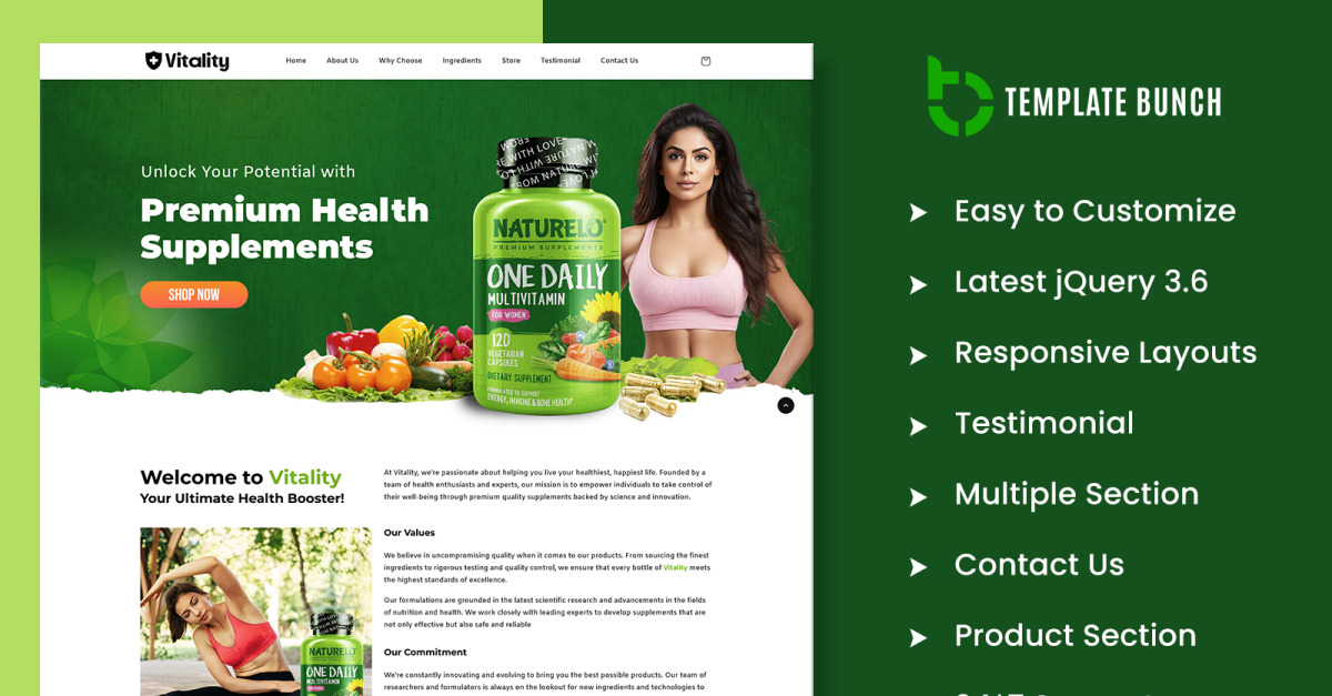 Vitality – Thème Shopify polyvalent à produit unique – Description