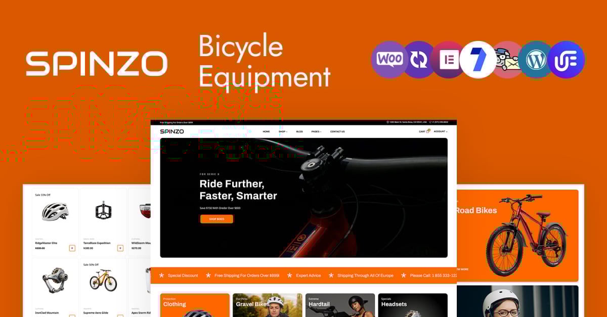 Spinzo - Thème WordPress WooCommerce pour boutique d'équipement de vélo